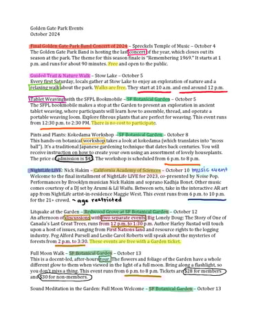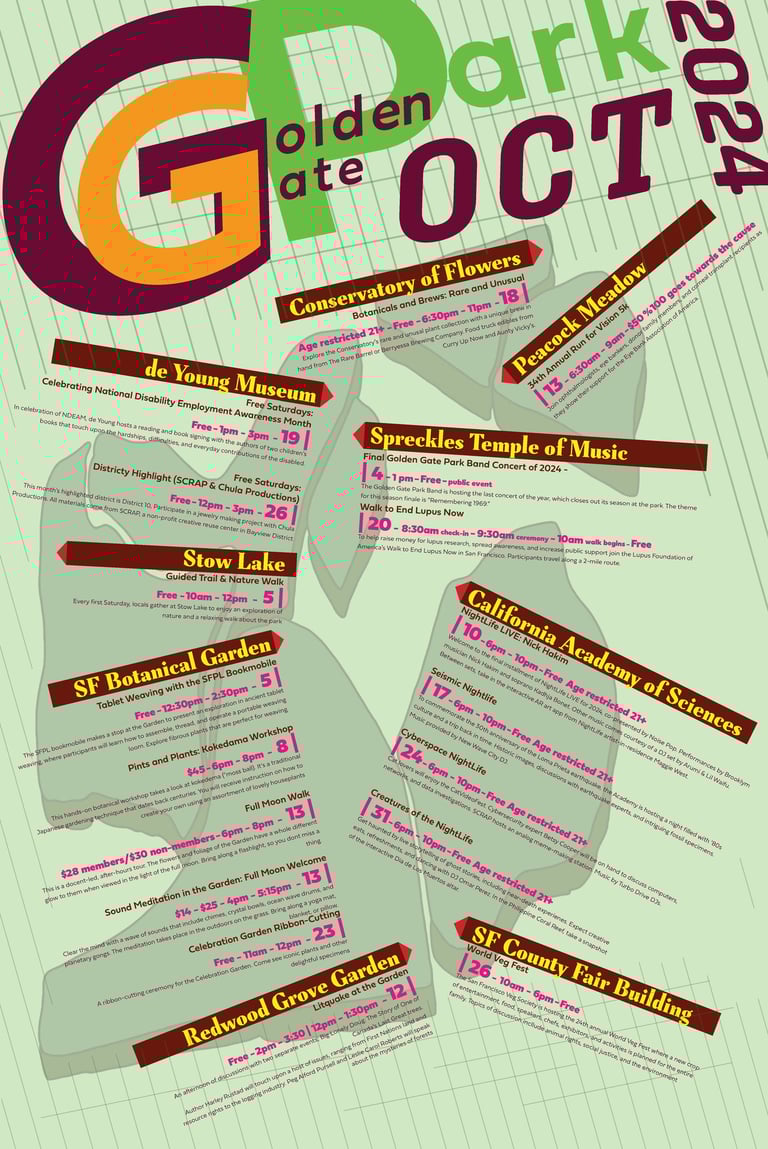 The design overall captured the initial idea with the labels pointing to the different spots on the map to give people an idea of where in the park the event is taking place. This helps make the design informative and engaging.